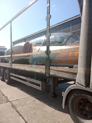 Завершена перевозка реактивного учебно-тренировочного самолёта Aero L-29 ""Дельфин"" из Тамбовской области на аэродром в посёлке Алферьево, Московская область. Транспортировка осуществлялась наземным способом с применением спецтехники, предназначенной для безопасного перемещения авиационных конструкций.